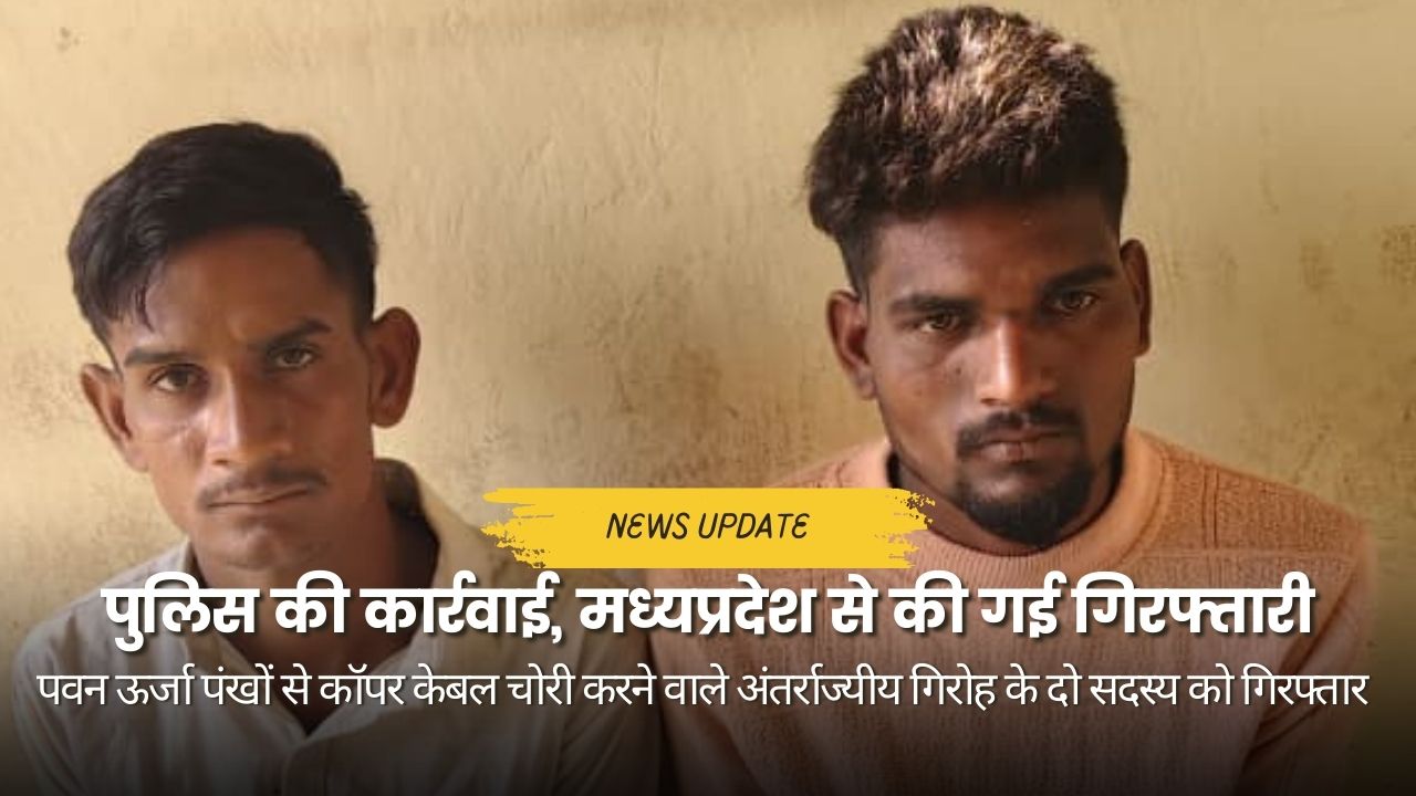 पवन ऊर्जा पंखों से कॉपर केबल चोरी करने वाले अंतर्राज्यीय गिरोह के दो सदस्य को गिरफ्तार December 15, 2025 No Comments
