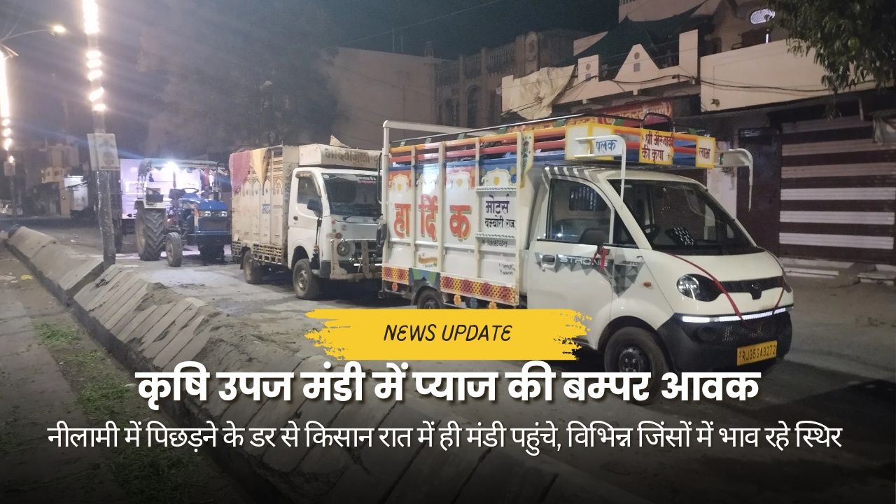 प्रतापगढ़। जिले की कृषि उपज मंडी में इन दिनों प्याज की बम्पर आवक के चलते चहल-पहल चरम पर है। हालात यह हैं कि नीलामी में समय पर शामिल होने के लिए किसान ठंड के बावजूद रात में ही अपनी उपज लेकर मंडी पहुंच रहे हैं। मंगलवार रात से ही प्रतापगढ़ कृषि उपज मंडी के बाहर दोनों ओर करीब एक किलोमीटर तक ट्रैक्टर-ट्रॉलियों और अन्य वाहनों की लंबी कतारें लग गईं। किसान बुधवार सुबह मंडी खुलने और नीलामी शुरू होने का इंतजार करते नजर आए।